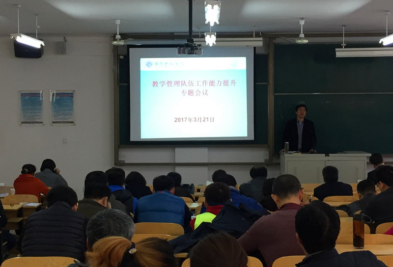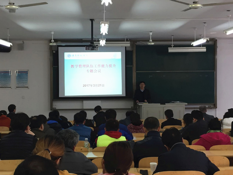 3月21日下午,我校于章丘校区1号教学楼A207召开了“教学管理工作队伍工作能力提升专题会议”。林松柏校长、张福建副校长出席了会议。教务处(评建办)、教学质量监控中心、实验管理中心全体人员,人事处相关人员,各学院分管教学负责人、教学秘书、教务员、专职实验人员参加了会议。会议由林松柏校长主持。