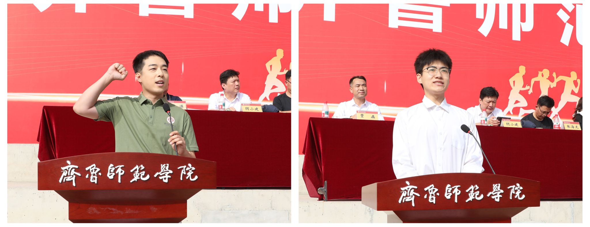 体育学院教师李泽阳、信息科学与工程学院23级人工智能二班付浩辰分别代表裁判员和运动员宣誓。