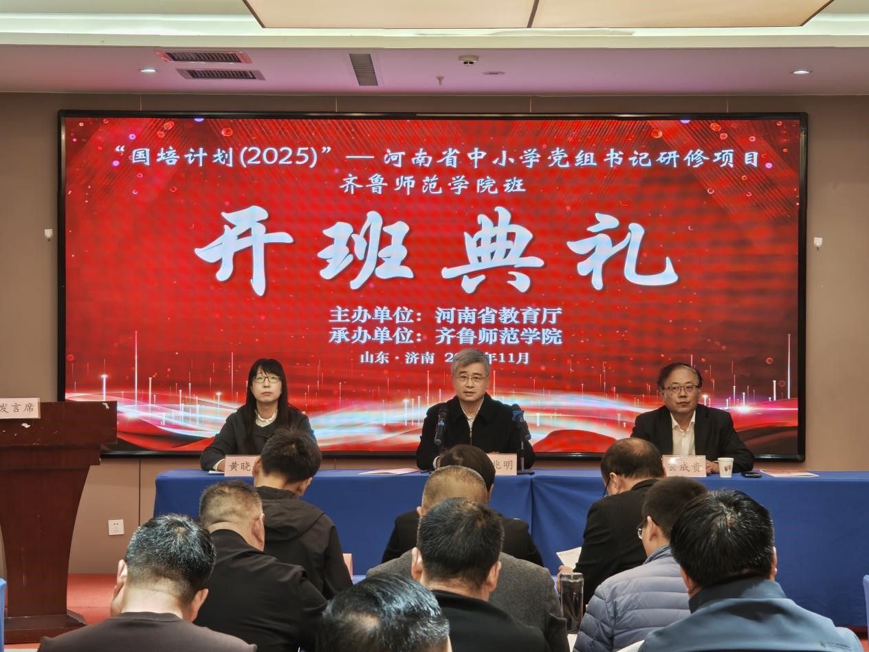 11月16日上午,由河南省教育厅主办、齐鲁师范学院承办的“国培计划2025”——河南省中小学党组书记研修项目在济南顺利开班。副校长张兆明出席开班仪式并致辞,开班仪式由中小学教师远程教育中心主任玄成贵主持。