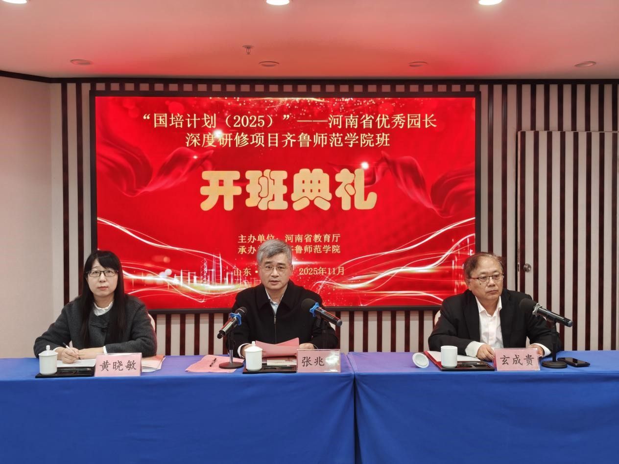 11月16日上午,由河南省教育厅主办、齐鲁师范学院承办的“国培计划2025”——河南省幼儿园园长深度研修项目在济南顺利开班。副校长张兆明出席开班仪式并致辞,开班仪式由中小学教师远程教育中心主任玄成贵主持。