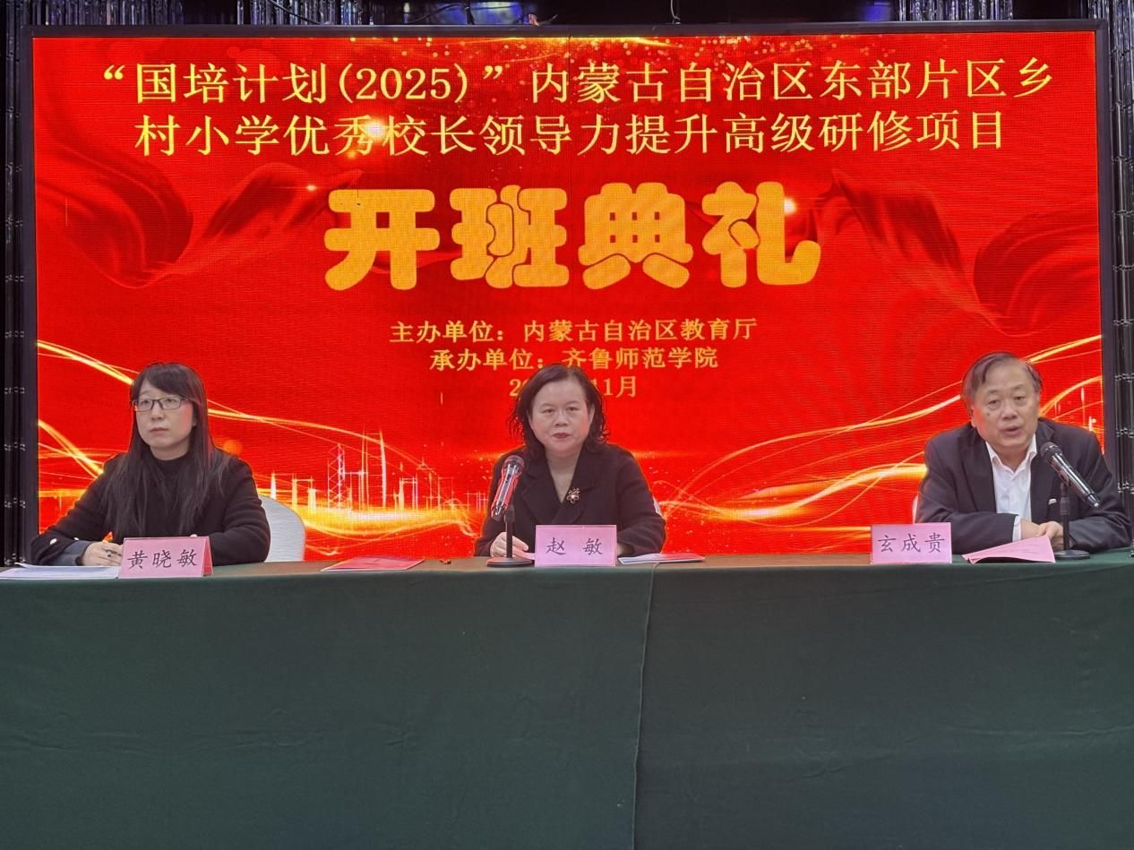 11月17日上午,由内蒙古自治区教育厅主办、齐鲁师范学院承办的“国培计划2025”——内蒙古自治区东部片区乡村小学优秀校长领导力提升高级研修项目在济南顺利开班。学校党委副书记赵敏出席开班仪式并致辞,开班仪式由中小学教师远程教育中心主任玄成贵主持。