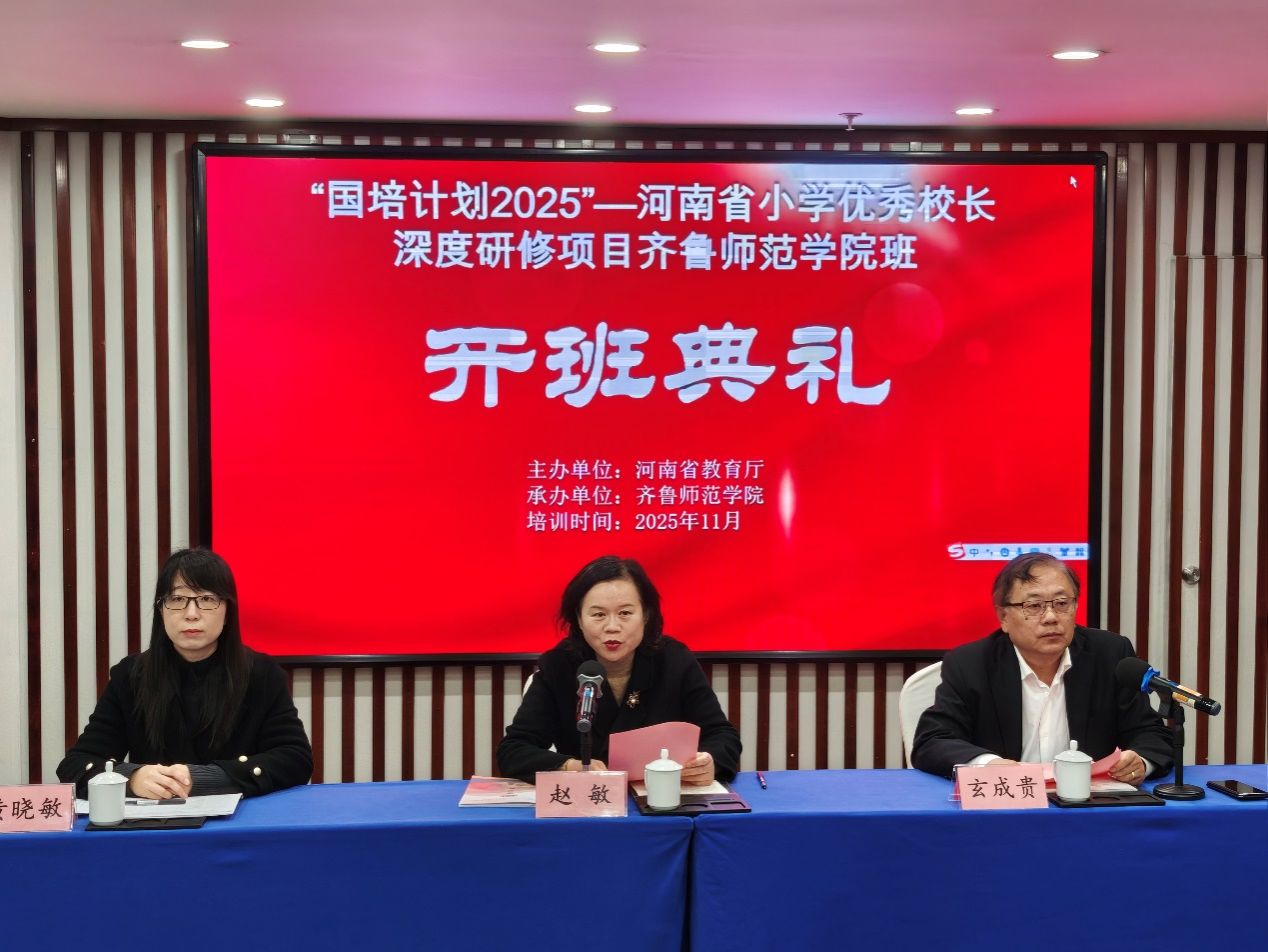 11月17日上午,由河南省教育厅主办、齐鲁师范学院承办的“国培计划2025”——河南省小学优秀校长深度研修项目在济南顺利开班。学校党委副书记赵敏出席开班仪式并致辞,开班仪式由中小学教师远程教育中心主任玄成贵主持。