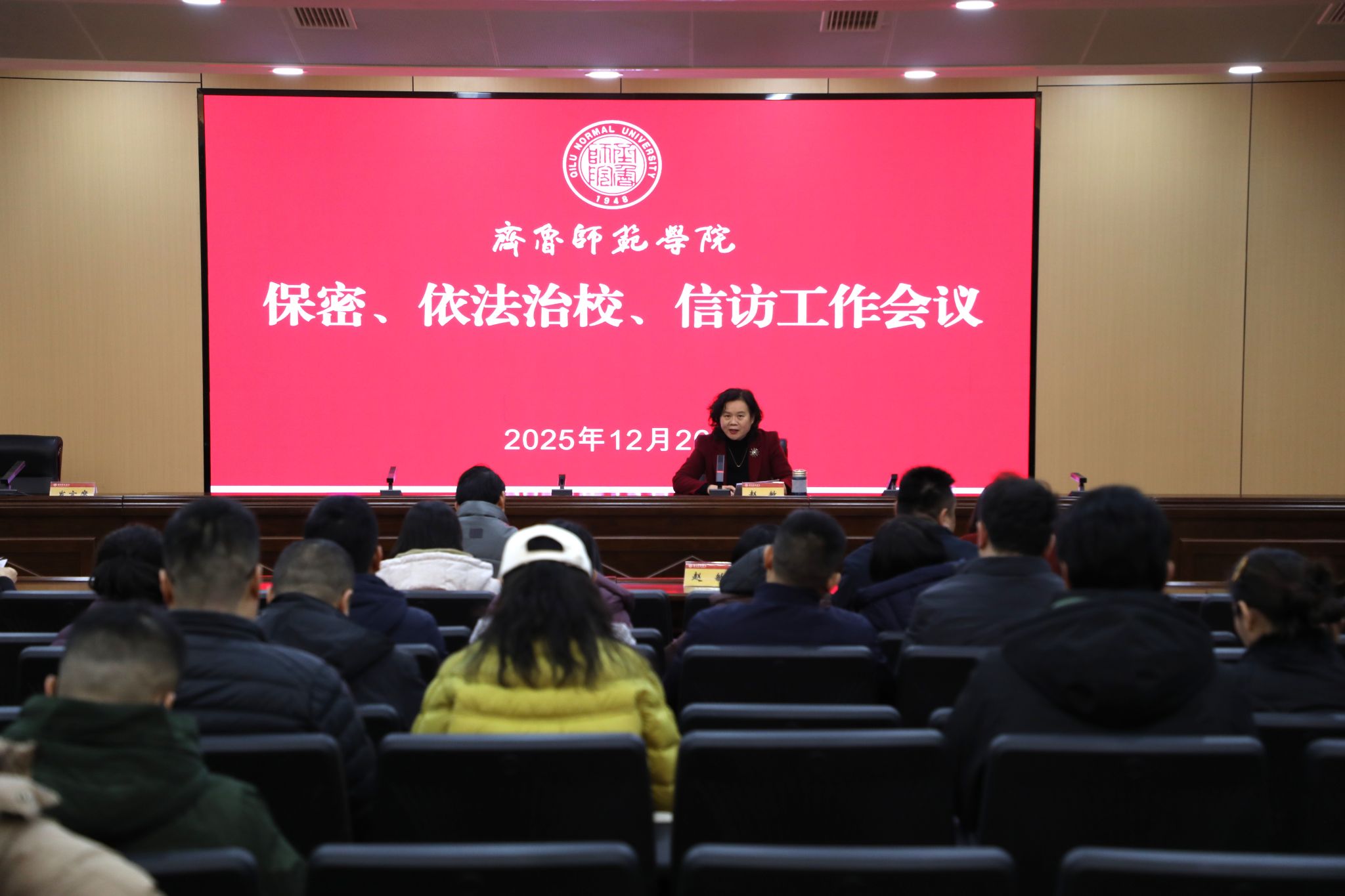 12月26日上午,学校在章丘校区第二学术报告厅召开保密、依法治校、信访工作会议,学校党委副书记赵敏主持会议并讲话,党委委员、统战部部长宋新刚,党委委员、宣传部部长孙磊出席会议。