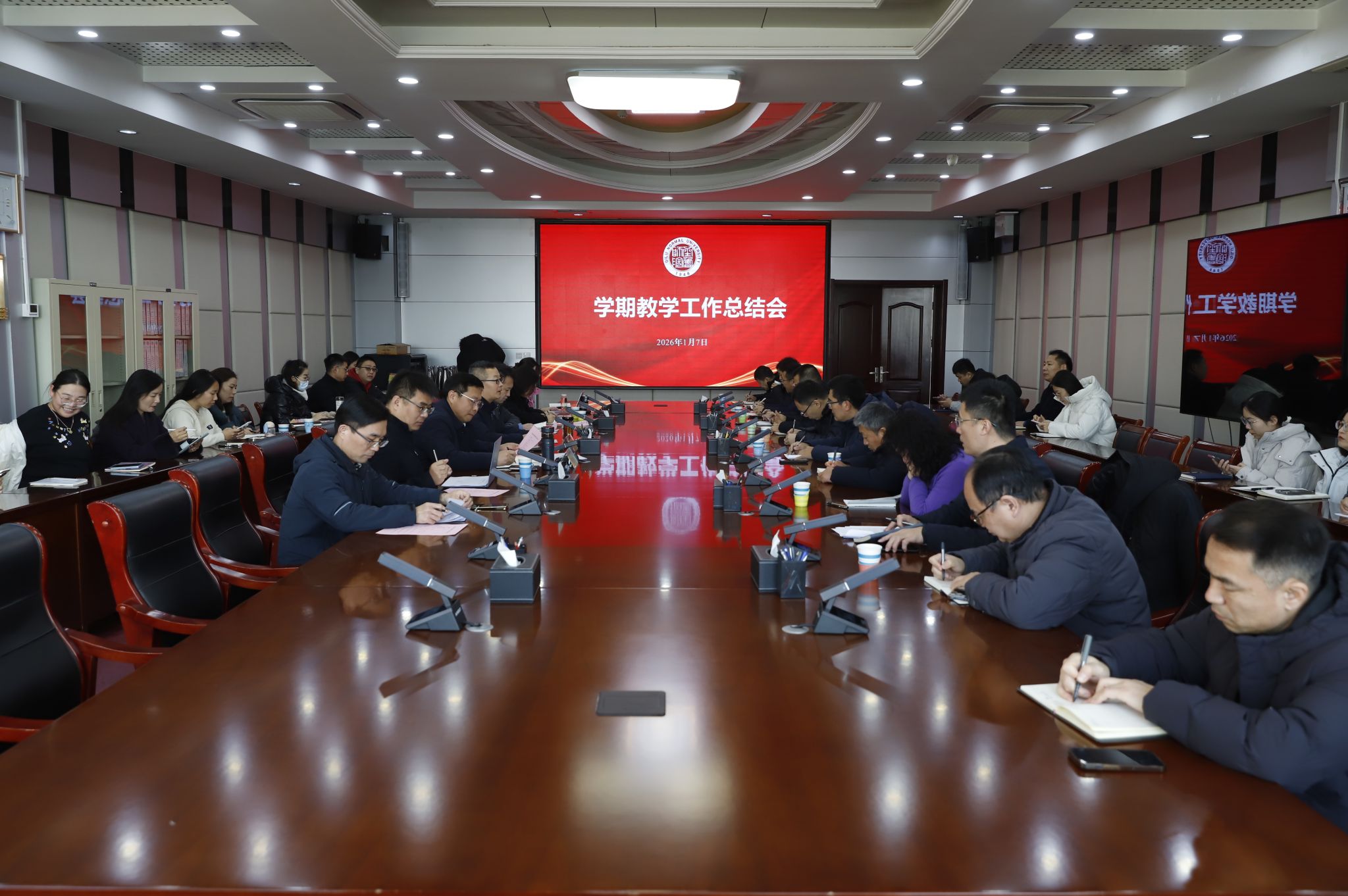 为全面总结2025年教学工作成效,统筹部署近期重点教学任务,1月7日上午,齐鲁师范学院学期教学工作总结会议在章丘校区第一会议室召开。党委副书记、校长郑秀文,党委委员、副校长孙洪兆出席会议。会议由孙洪兆主持。