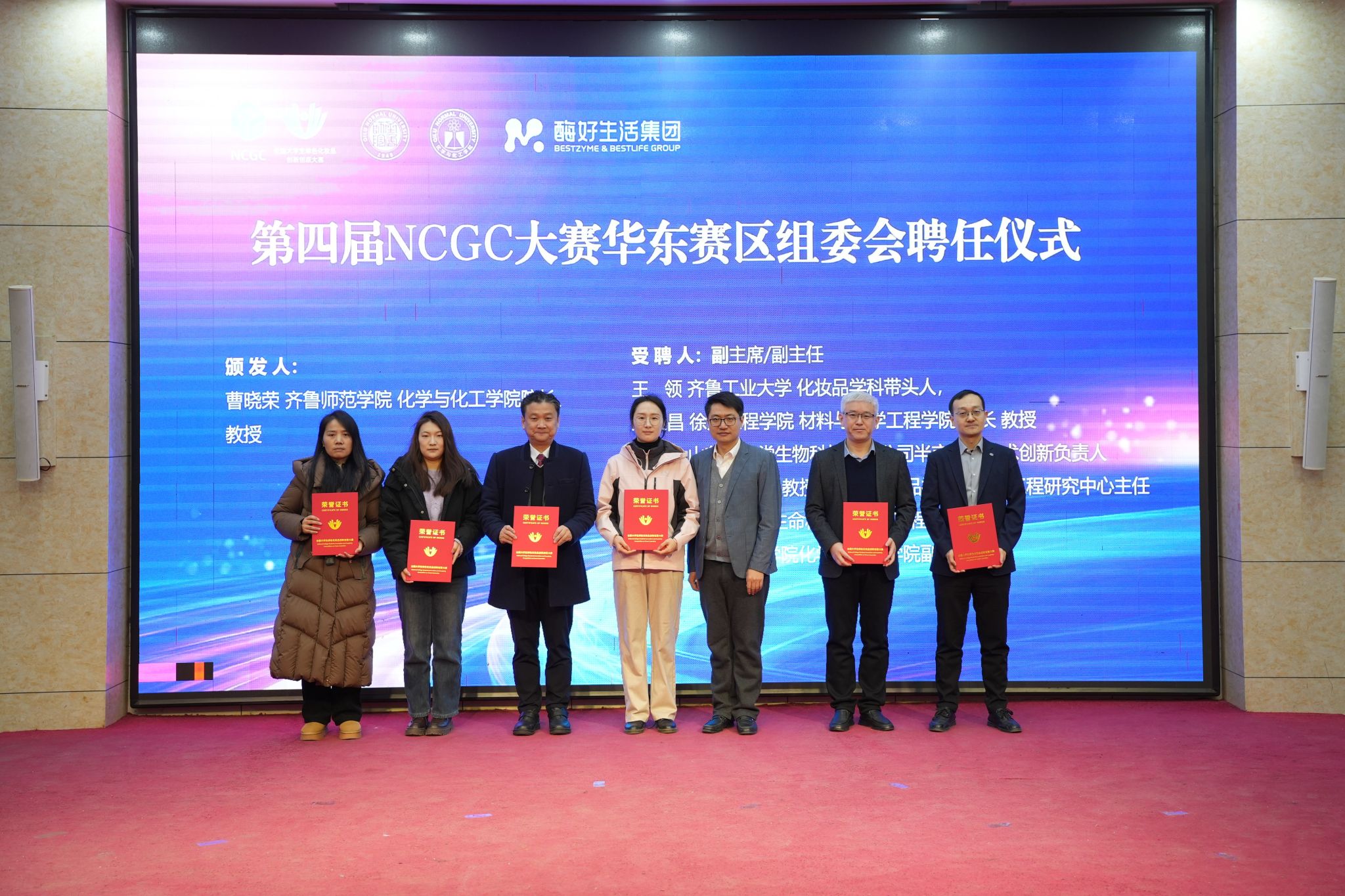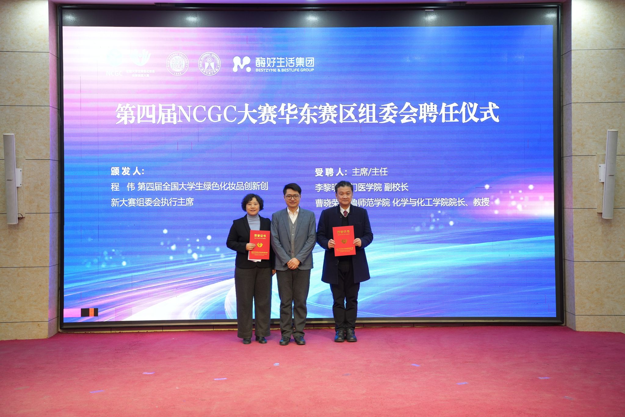 为给大赛提供专业赛事指导与服务,保障赛事各项工作高效开展,第四届NCGC大赛华东赛区组委会设主席/主任2人,副主席/副主任6人,常务委员22人,委员15人,程伟、曹晓荣等为受聘人颁发聘书。同时,程伟、第四届NCGC大赛组委会副秘书长宗东升为酶好生活集团、山东花物堂化妆品股份有限公司颁发合作单位牌匾。