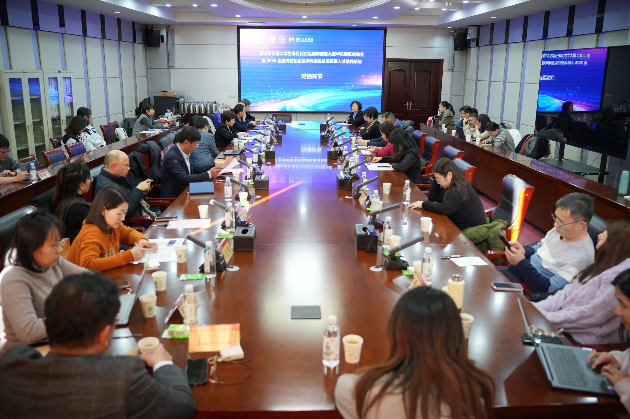 启动仪式上,程伟和郑秀文共同为第四届全国大学生绿色化妆品创新创意大赛华东赛区组委会揭牌。