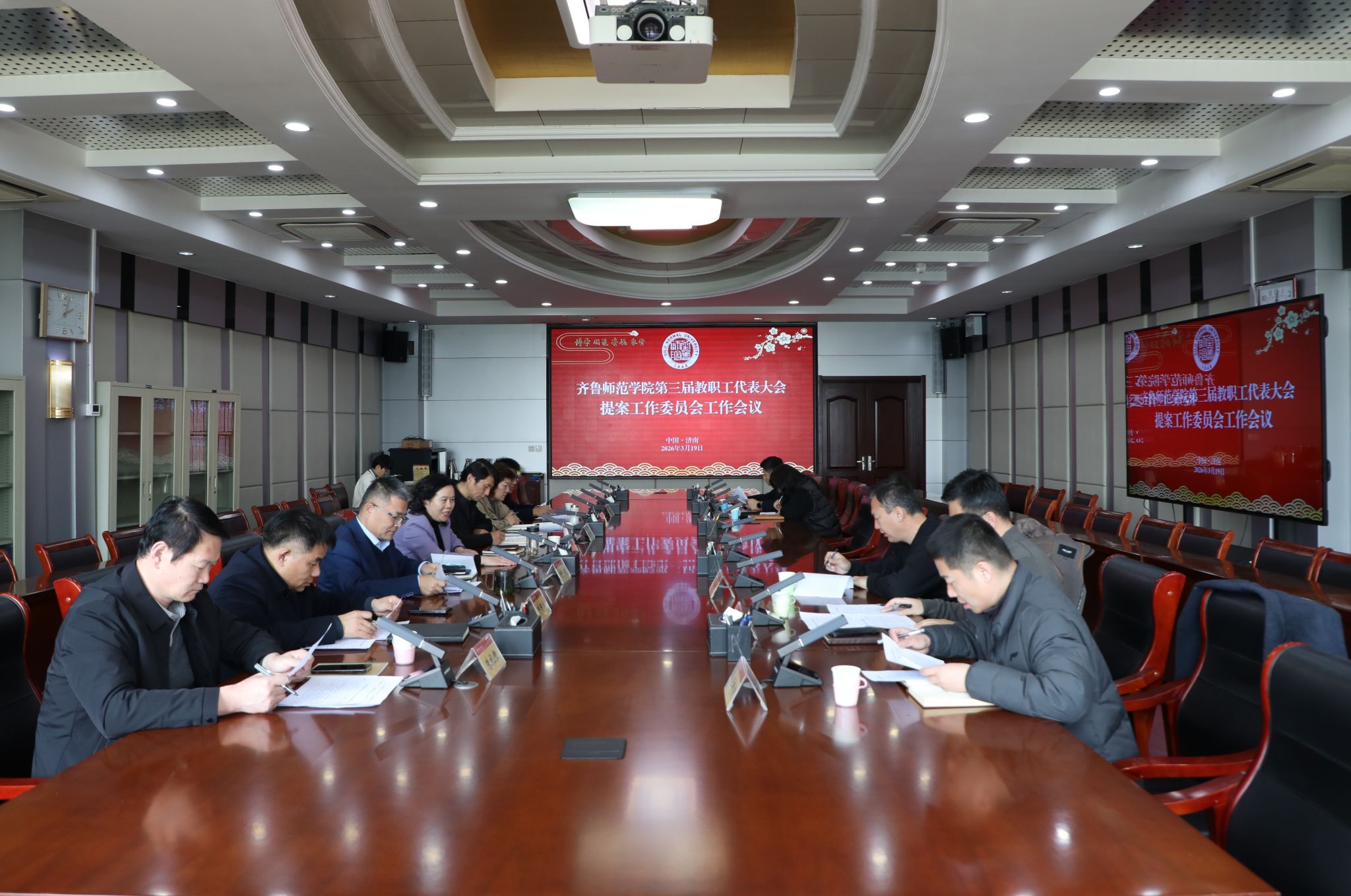 3月19日,齐鲁师范学院第三届教职工代表大会提案委员会工作会议在章丘校区第一会议室召开。学校党委副书记赵敏主持会议并讲话。党委委员、统战部部长宋新刚,工会主席刘建,工会副主席马海涛及提案工作委员会全体成员参加会议。