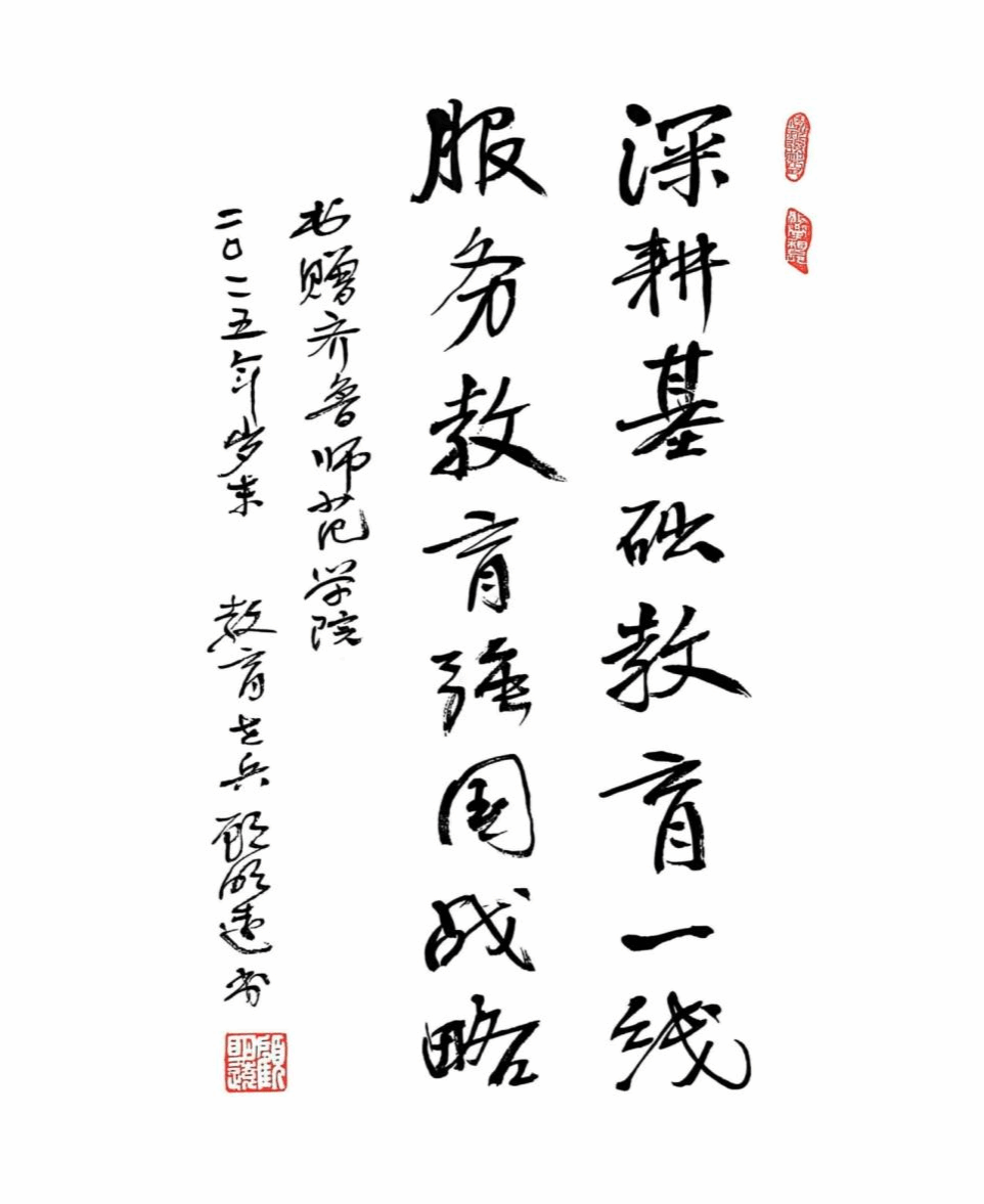 这份题字饱含对我校教育学学建设的高度认可。近年来,学校聚焦教育学学科建设,扎根齐鲁大地,深耕教师教育,集中小学教师职前培养与职后培训于一体,连续多年承办国家级、省级培训任务,承办山东省教育援疆项目、山东省教育援青项目、山东省教育援藏项目、山东省教育援助新疆兵团十二师等来鲁培训项目。