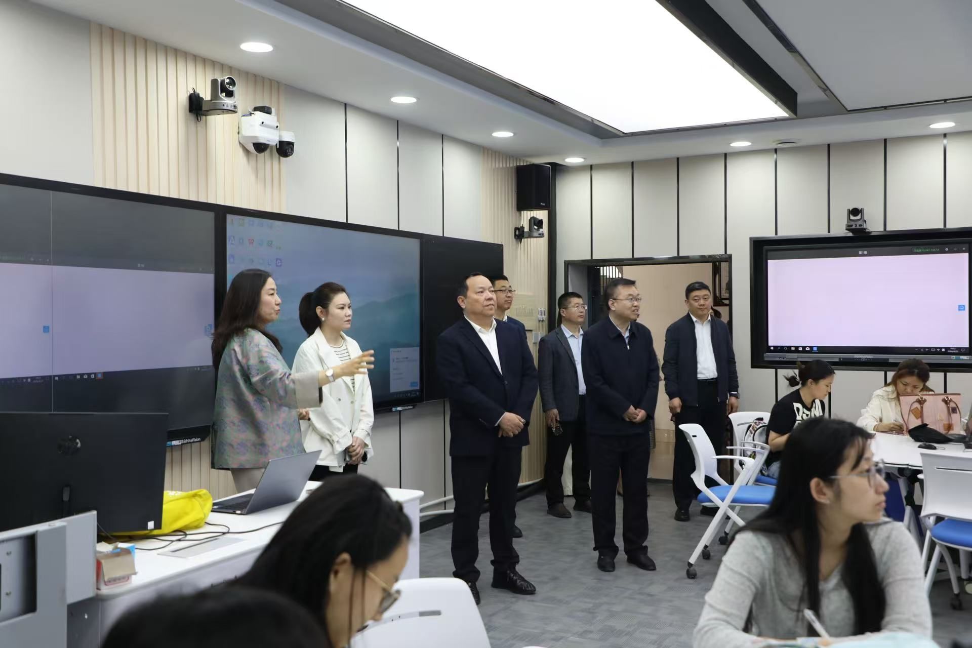 座谈会前,车滨一行参观了学校FAST天文大数据中心、分析检测中心、经济作物育种中心、未来教师发展智能实验室和学校办学成就展。