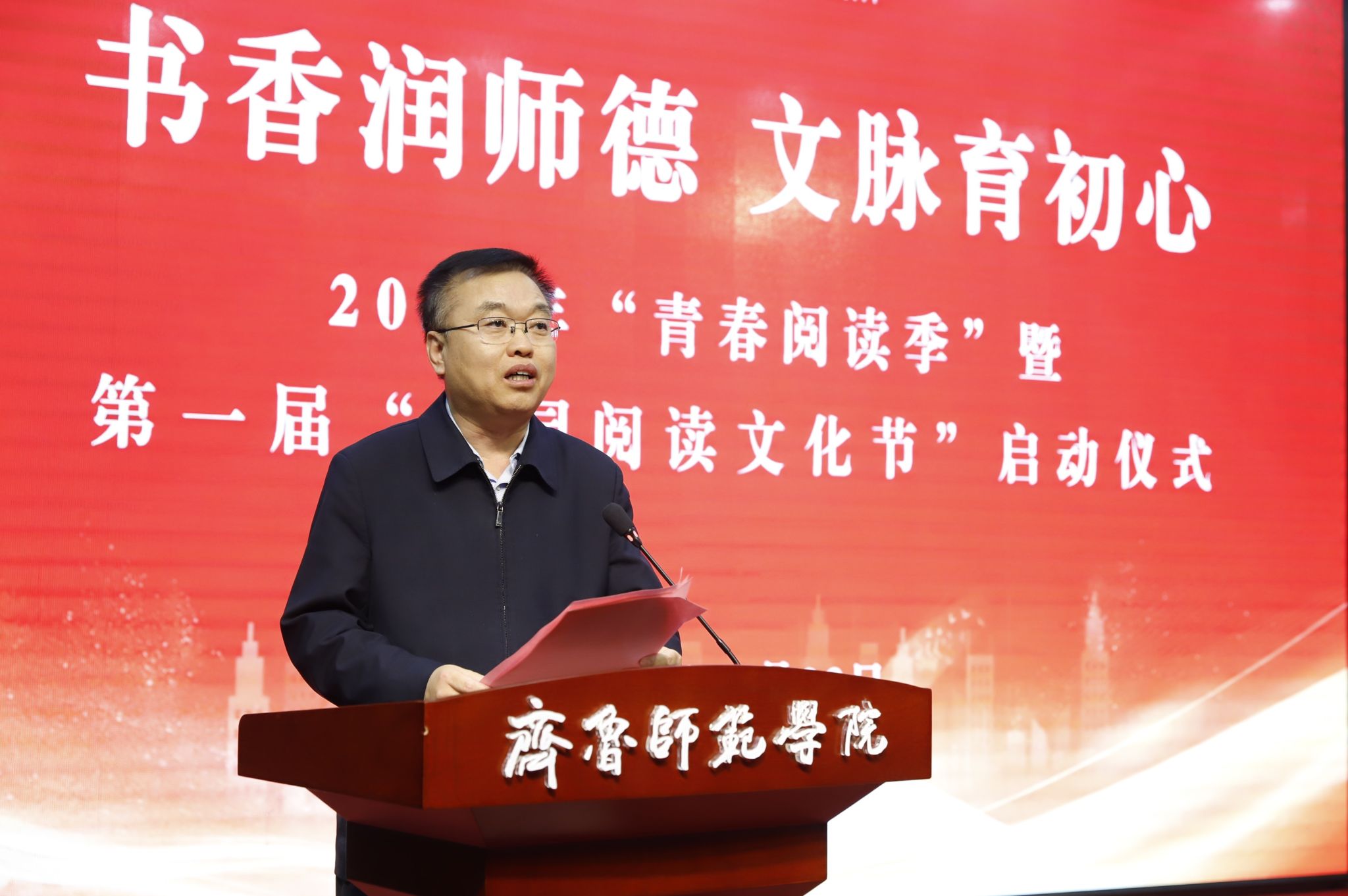 4月23日下午,学校2026年“青春阅读季”暨第一届“校园阅读文化节”启动仪式在章丘校区第一学术报告厅举行。学校党委书记赵长林出席仪式并讲话,副校长张兆明,党委委员、统战部部长宋新刚出席仪式。科学出版社、高等教育出版社相关负责人,学校有关单位负责同志,各二级学院党委书记、院长、党委副书记,全体辅导员,以及300余名师生参加启动仪式。仪式由党委委员、宣传部部长孙磊主持。