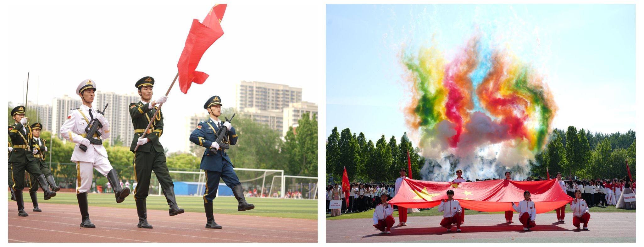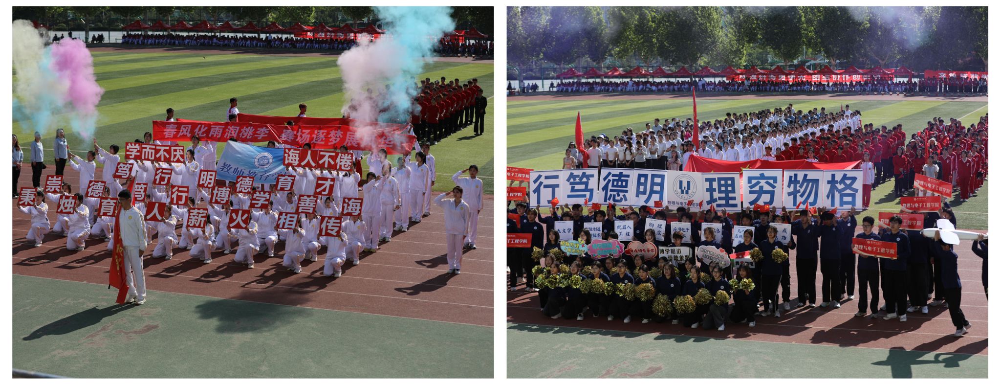 党委书记赵长林宣布:齐鲁师范学院第三十九届运动会开幕!现场彩烟腾空而起,掌声与欢呼声响彻全场。