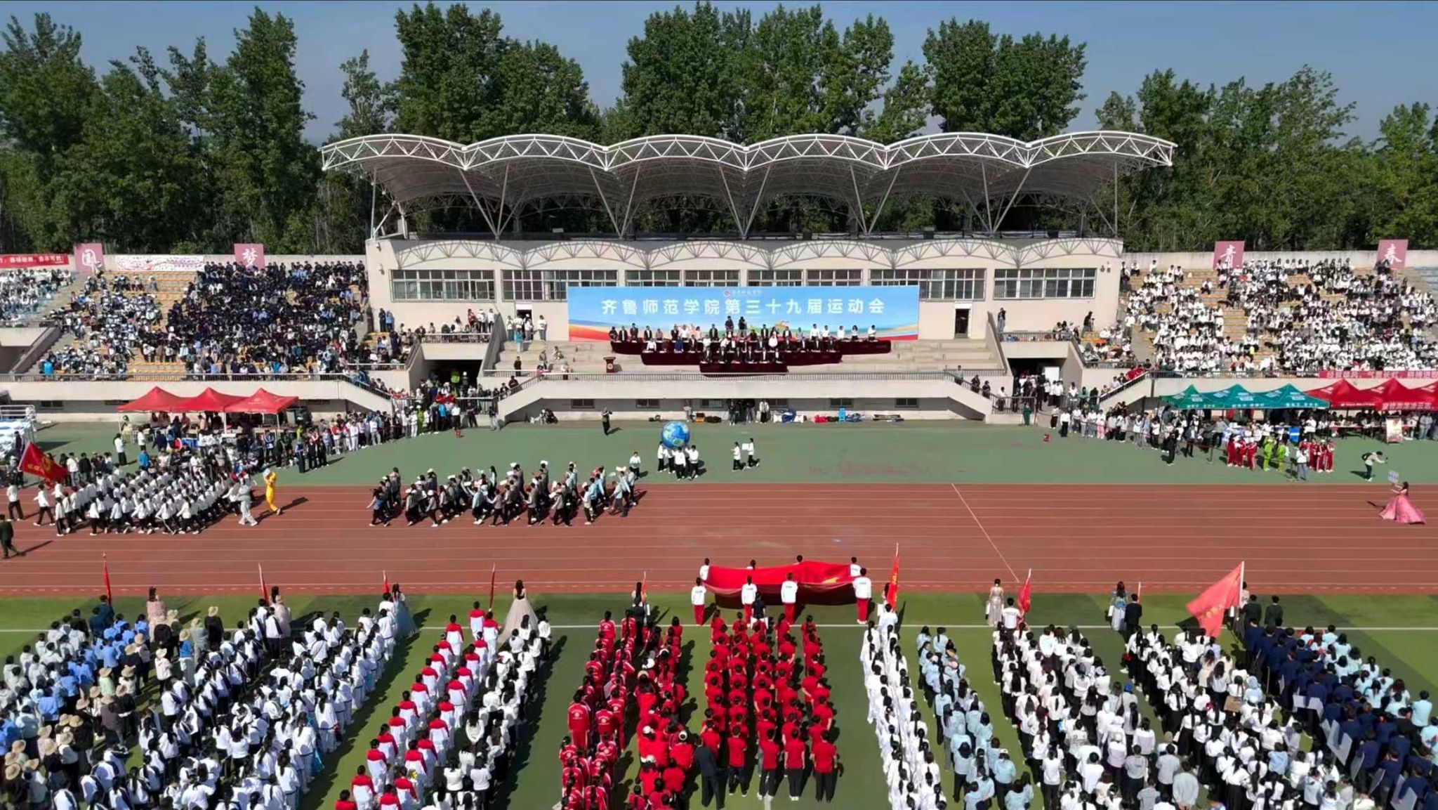 春风和煦,草木芳华。4月29日-30日上午,齐鲁师范学院第三十九届运动会在章丘校区运动场成功举行。学校党委书记赵长林,党委副书记、校长郑秀文,副校长张兆明,党委委员、纪委书记、监察专员高明辉,党委委员、副校长孙洪兆,党委委员、统战部部长宋新刚,党委委员、宣传部部长孙磊,党委委员、组织部部长宗美娟,各部门、单位负责人出席活动。