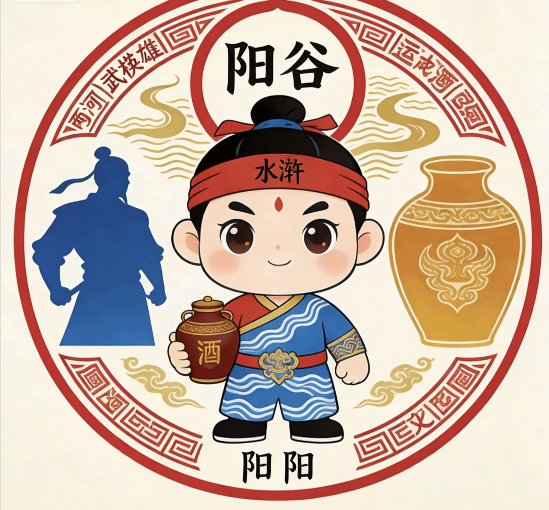 2025级美术学国画班陈甜甜以两河文化、水浒英雄、产业振兴为核心,融合黄河大运河交汇形态、武松英雄符号与现代产业线条,整体简洁大气、辨识度高。色彩采用古城红、山河青、科技蓝、生态绿,寓意古韵阳谷、产业兴旺、文旅兴盛、生态宜居,适配城市宣传、产业招商、文旅推广全场景。