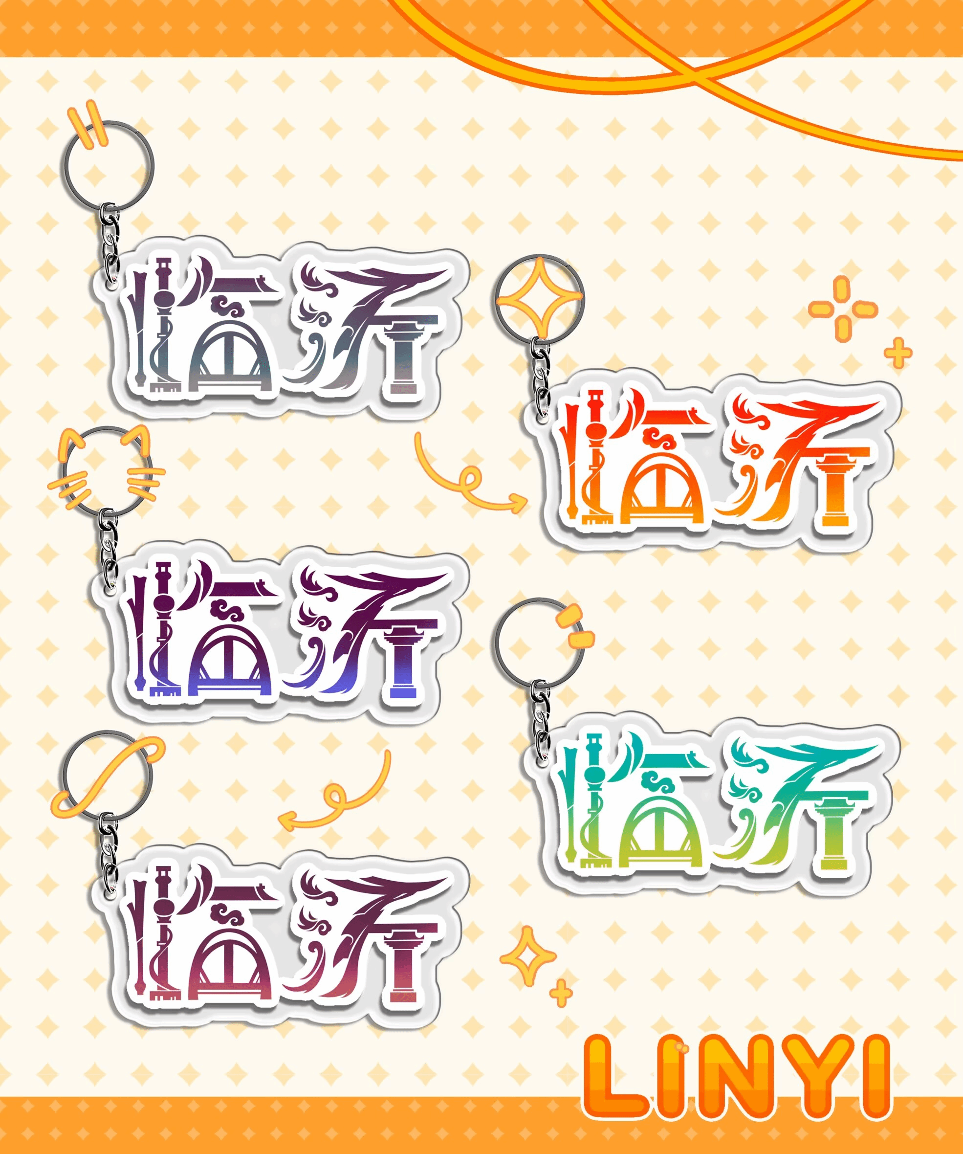 2024级包装设计一班贾欣然以“临沂”二字为视觉核心,将城市地标风貌与字体设计深度融合,萃取凤凰广场、临沂电视塔、沂龙湾大桥等的标志性视觉元素,打造兼具地域辨识度与艺术美感的专属字体,并将其转化为钥匙扣文创形式。
