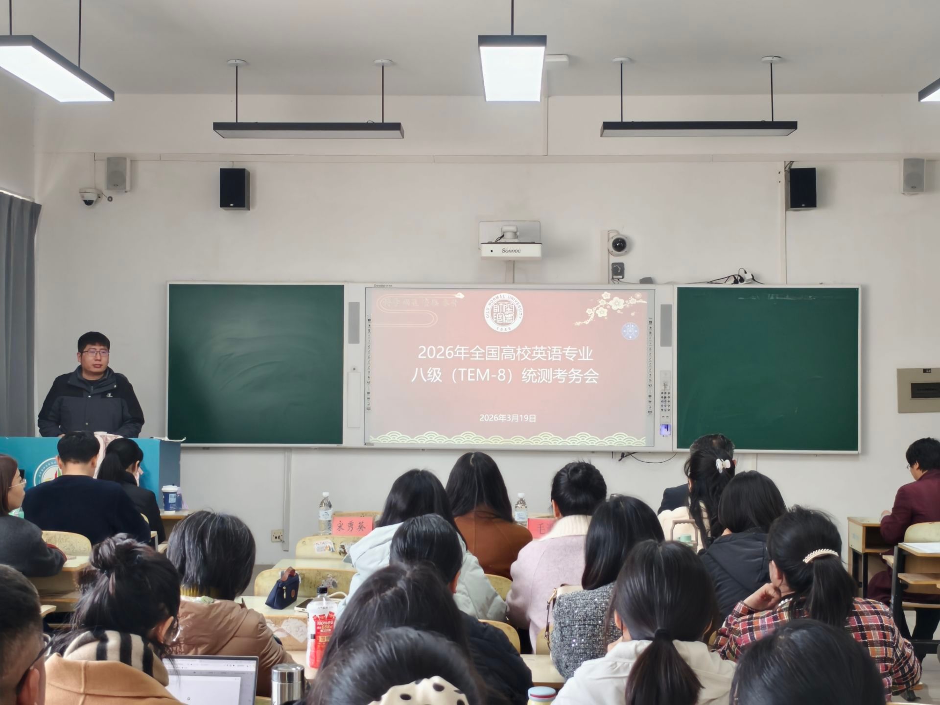 学校高度重视本次考试工作,专门成立考试工作领导小组,由教务处和外国语学院具体负责考试组织相关事项。为规范考试管理,保障考试顺利进行,外国语学院于3月19日下午召开了考务工作培训会议,对考风考纪、考务组织、安全保卫、后勤保障等工作进行严格要求和详细部署,并详细讲解考务工作的操作规程和要点,明确了本次英语专业八级考试的重要时间节点和突发事件的处理办法,确保每个环节都落到实处。