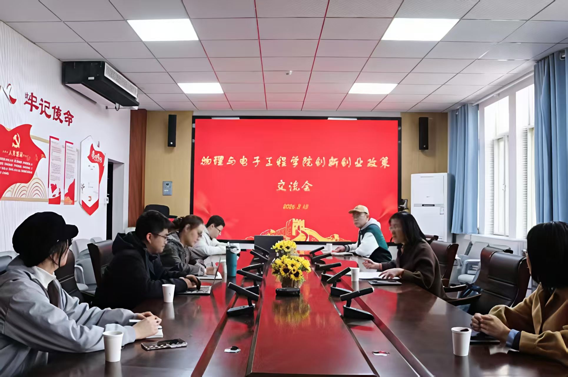 3月13日,物理与电子工程学院于学院会议室召开创新创业政策交流会,学校创新创业学院院长蔡平应邀作专题分享。物理与电子工程学院党委书记臧葳,竞赛负责老师缪晨晨、徐爱林,创新创业学院相关工作人员李琦、刘晓敏及部分学生代表参加会议。