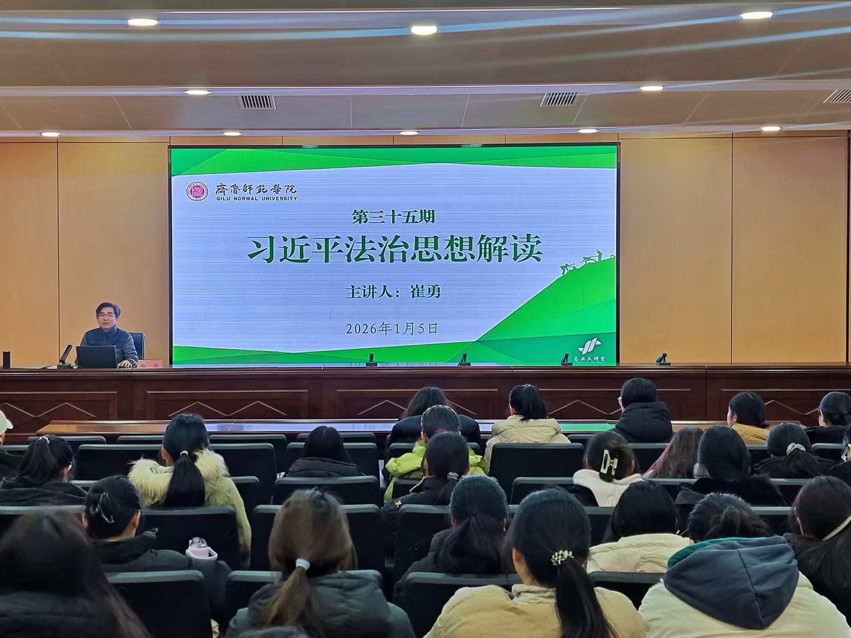为深入学习贯彻党的二十大和二十届历次全会精神,深入学习宣传贯彻习近平法治思想,落实学校关于开展普法宣传工作的要求,在学校“法治宣传教育月”系列活动深入开展之际,2026年1月5日,第三十五期志业大讲堂特邀马克思主义学院崔勇教授作《习近平法治思想解读》专题报告,以思想引领赋能青年成长,以法治教育筑牢成才根基。讲座由马克思主义学院党委副书记毛雯主持,200余名师生代表现场聆听学习。