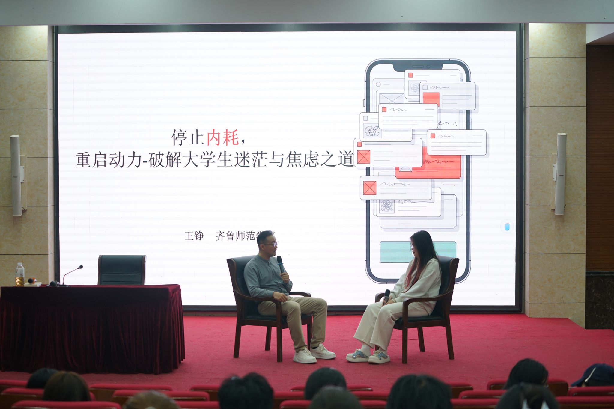 本次专题心理健康讲座特邀齐鲁师范学院教师教育学院教授王铮主讲。讲座紧扣当下大学生高频出现的精神内耗、自我否定、学业焦虑、目标缺失、心态浮躁、前途迷茫等核心痛点,以“你不是懒,你只是把CPU烧干了”的生动比喻,精准点破当代青年内耗本质,结合刷手机后更疲惫、睡前反复纠结言行、收藏学习方法却不践行、盲目攀比引发焦虑等真实场景,层层剖析大学生心理内耗与成长焦虑的核心根源、外在表现与潜在危害。