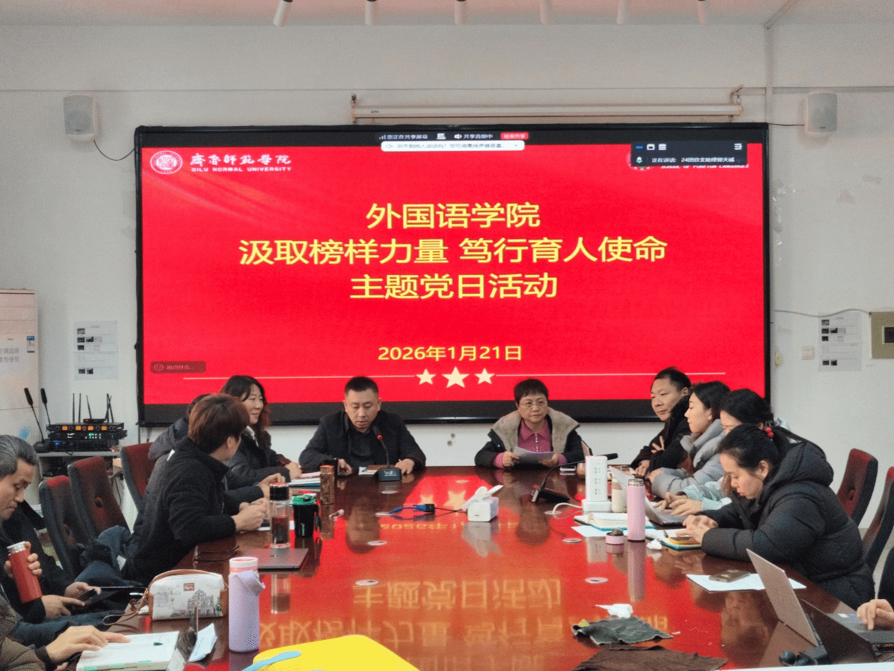 为深入学习贯彻习近平新时代中国特色社会主义思想,发挥先进典型示范引领作用,锤炼师生党员党性修养,1月21日,外国语学院组织全体师生党员开展“汲取榜样力量 笃行育人使命”主题党日活动。活动以集中观看《榜样10》专题节目、开展交流研讨为主要形式。学院党委书记于江主持活动。