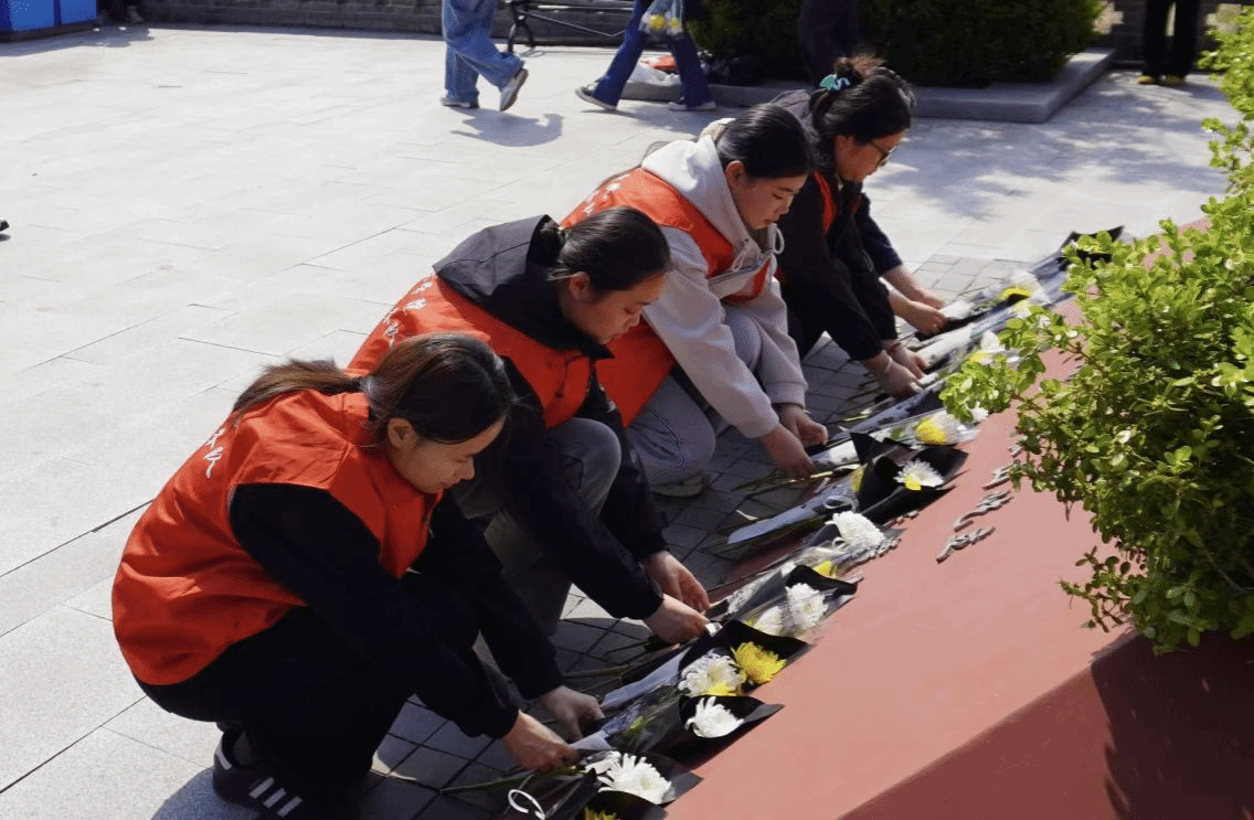 最后,同学们依次缓步上前,向革命先烈敬献鲜花,用最朴素的方式表达对英烈的缅怀与敬仰,寄托对革命先辈的无限哀思。