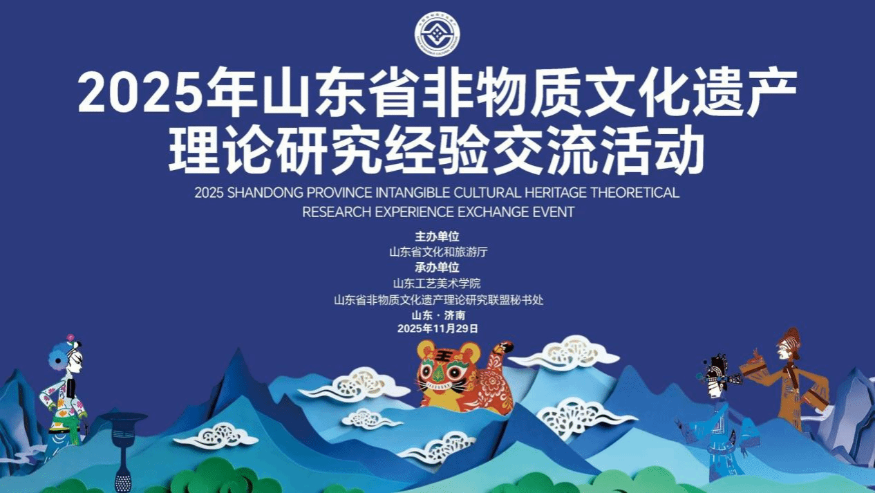11月29日,“2025年山东省非物质文化遗产理论研究经验交流活动”在山东工艺美术学院举办。此次活动由山东省文化和旅游厅主办,山东省非物质文化遗产理论研究联盟秘书处(齐鲁师范学院中国乡村调查研究中心)、山东工艺美术学院联合承办。山东省文化和旅游厅非物质文化遗产处处长、一级调研员张百科,非物质文化遗产处副处长蒋士秋,山东工艺美术学院党委委员、副校长韩文涛出席开幕式。