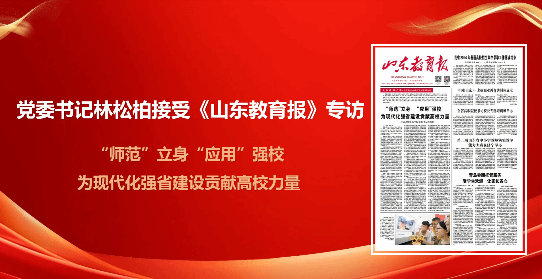 2024年8月5日,《山东教育报》在头版头条刊发文章,以《“师范”立身 “应用”强校 为现代化强省建设贡献高校力量》为题,对齐鲁师范学院党委书记林松柏进行专题访谈。该访谈是《山东教育报》“走在前 挑大梁·山...查看更多 -