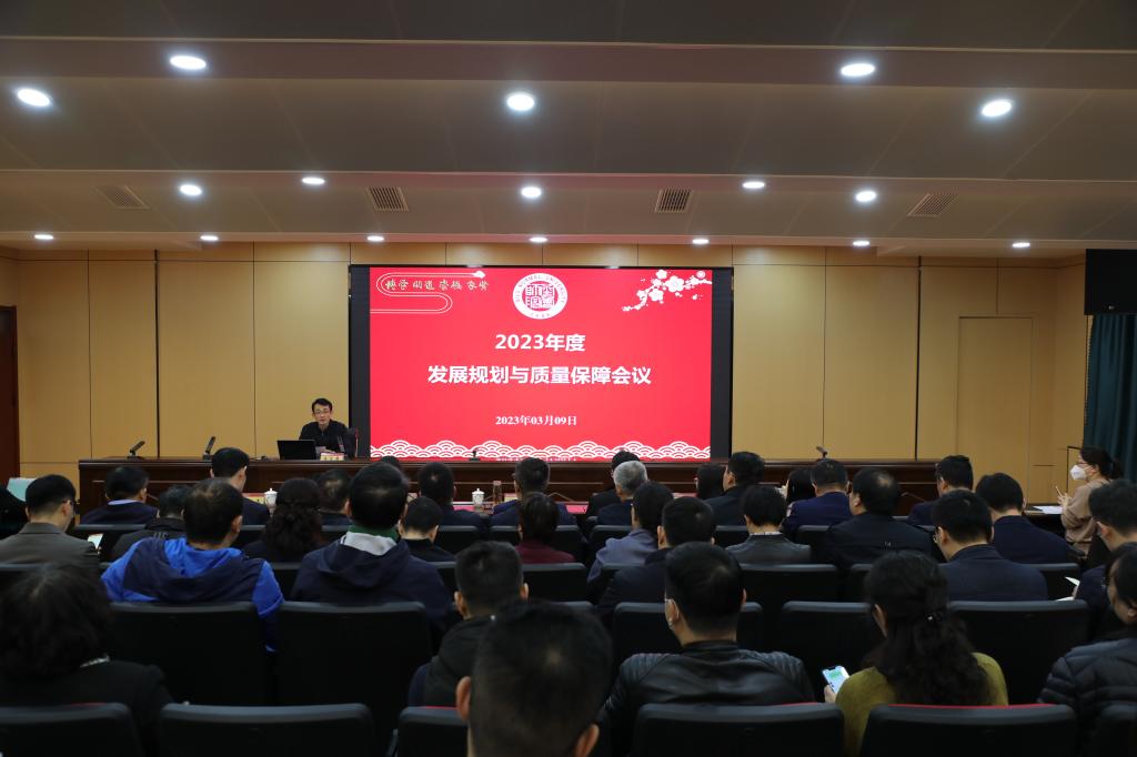 为做好质量保障和重点工作规划推进工作,3月9日上午,学校在2教A111召开发展规划与教学质量保障工作会议。学校党委书记林松柏出席会议并讲话,全体校级督导、相关职能部门负责人、各二级学院院长与副院长、发展规划与质量保障处全体人员参加了会议。会议由党委委员、副校长孙正主持。