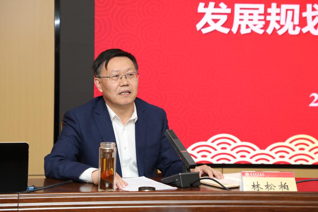林松柏强调要坚持系统观念的方法论,以规划为指引,以质量为导向,进行前瞻性的思考和全局性的谋划,推进学校未来发展的总体布局,构建新的发展格局,推动学校高质量内涵式发展。