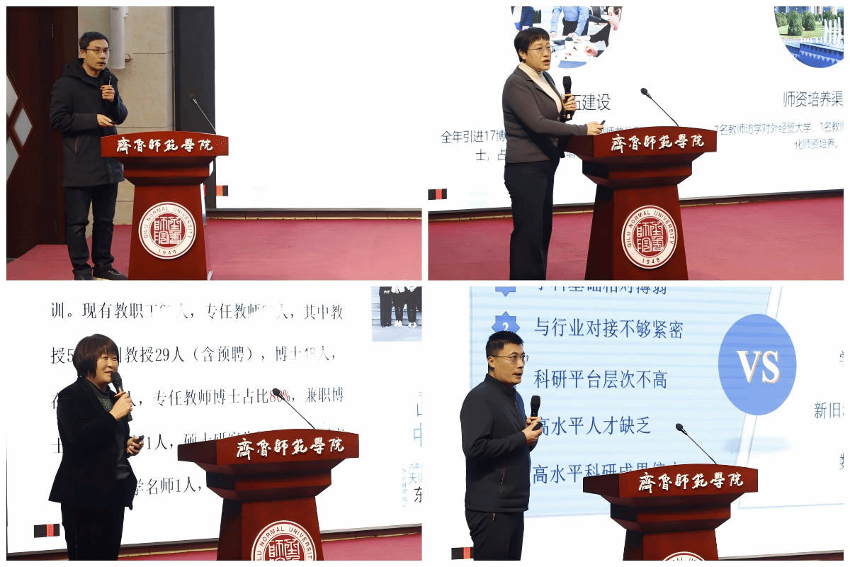 会上,科研处(学科建设办公室)处长于家杰宣读了2026年各二级学院、科研机构科研目标任务及重点工作安排;教师教育学院院长刘丙利、生命科学学院院长崔大勇、化学与化工学院院长曹晓荣、物理与电子工程学院副院长刘萌、经济与管理学院院长周健、地理与旅游学院院长王敏、信息科学与工程学院院长杜建彬分别代表教育、生物与医药、材料与化工、电子信息、应用经济学、地理学、人工智能等重点学科汇报了重点学科建设情况及2026年学科建设工作计划。