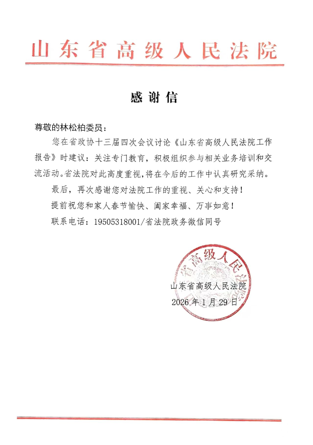 林松柏委员关注专门教育领域建设,建议希望公检法部门更加关注专门教育,多参与专门教育的交流活动、多组织业务培训、多提供技术支持。该建议精准把握专门教育发展的痛点难点,呼吁强化公检法部门与专门教育机构的协同联动。该建议因针对性强、可行性高,已收到山东省高级人民法院发来的感谢信,充分彰显了建议的实践价值。