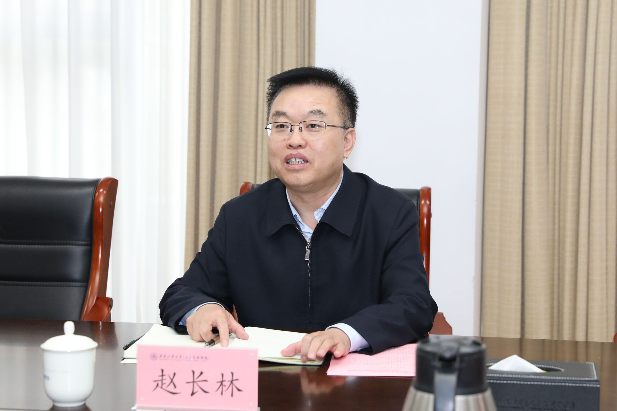 赵长林介绍了学校的基本情况和办学特色。他表示,学校目前正在立足办学定位与育人使命,不断优化学科专业结构,持续擦亮教师教育品牌特色,加快向应用型深度转型,推进科技创新与产业创新深度融合。希望以此次调研交流为契机,进一步加强经验互鉴、凝聚合作共识、明确合作方向,在人才培养、学科建设、产业融合、校地合作、平台建设、人才团队等方面开展深层次、富有成效的校际合作,携手为教育强省建设贡献更大力量。
