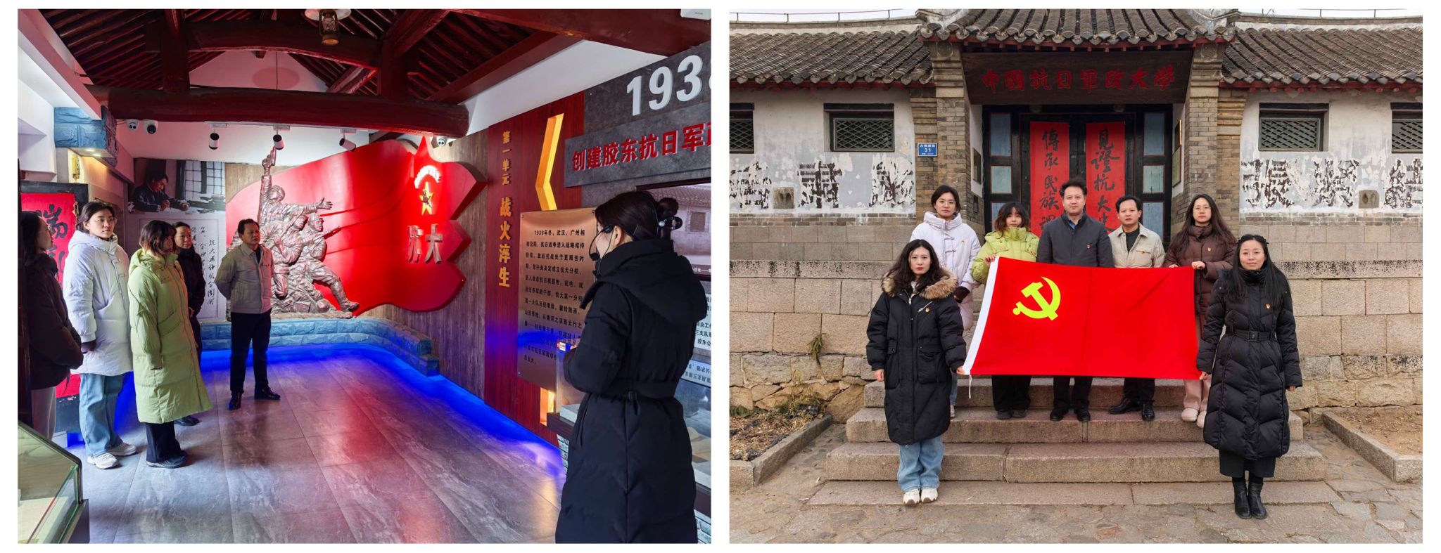 座谈会结束后,学院一行赴胶东抗大教育基地开展实践调研与辅导员素质拓展活动。在红色教育基地,辅导员团队通过实地参观、聆听现场讲解等形式,深入感悟革命传统与奋斗精神,接受了一次深刻的党性教育和思想洗礼。学院旨在通过此次实践,引导辅导员队伍从党的教育事业发展历程中汲取智慧与力量,进一步深刻把握新时代高校思想政治工作的使命要求,推动思想政治工作与学生成长需求相结合、与社会发展实践相融合,不断提升育人效。