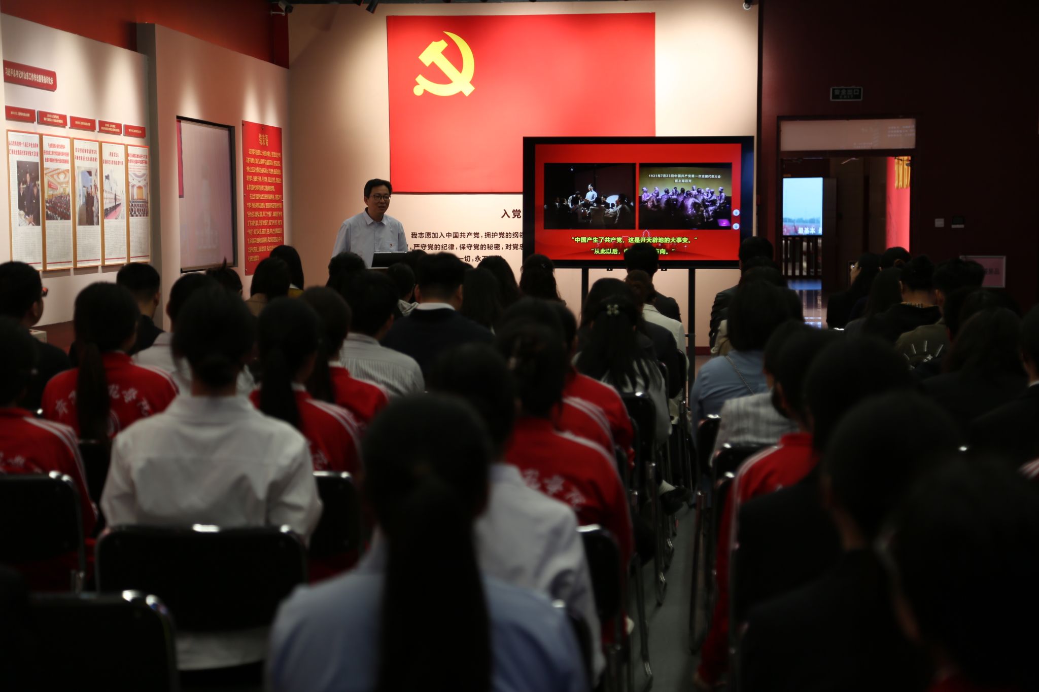 生命科学学院教师第一党支部书记刘婧教授带领全体党员面向鲜红的党旗庄严列队,高举右拳,重温入党誓词。铿锵誓言回荡展厅,进一步坚定了党员同志为党育人、为国育才的使命担当,强化了恪守初心、勇担使命的政治自觉。